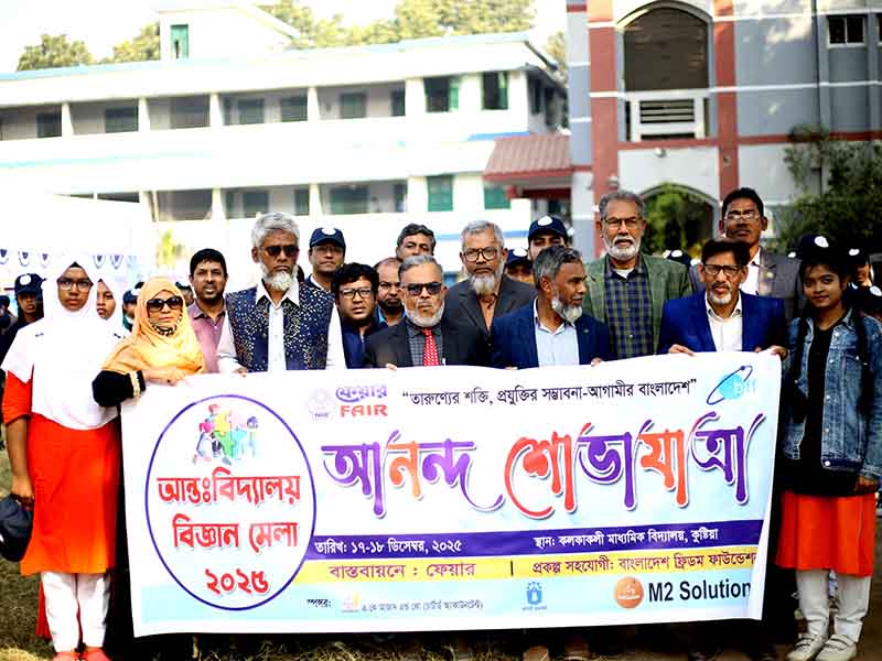Inter-School Science Fair-2025 was organized with the aim of building a science-minded, rational, and creative generation. Under the initiative of Friends Association for Integrated Revolution (FAIR), this two-day Inter-School Science Fair-2025 was held in Kushtia. On December 17 and 18, the premises of the traditional Kolkakoli Secondary School in Kushtia turned into a vibrant gathering of students’ innovative thoughts, science-based imagination, and creative expression.
